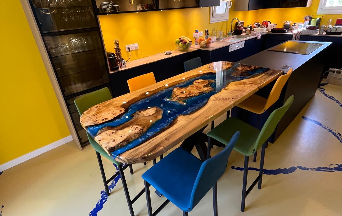 • Effets : marbre bleu:  résine epoxy RAL 5002